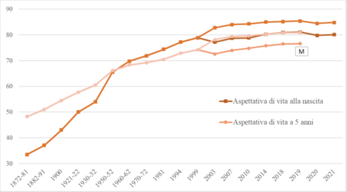 L’evoluzione dell’aspettativa di vita dal 1872 al 2021