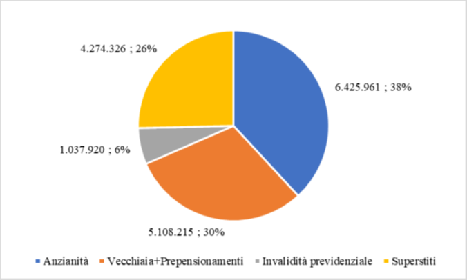 Le tipologie delle pensioni vigenti (elaborazione CdC su dati Inps)