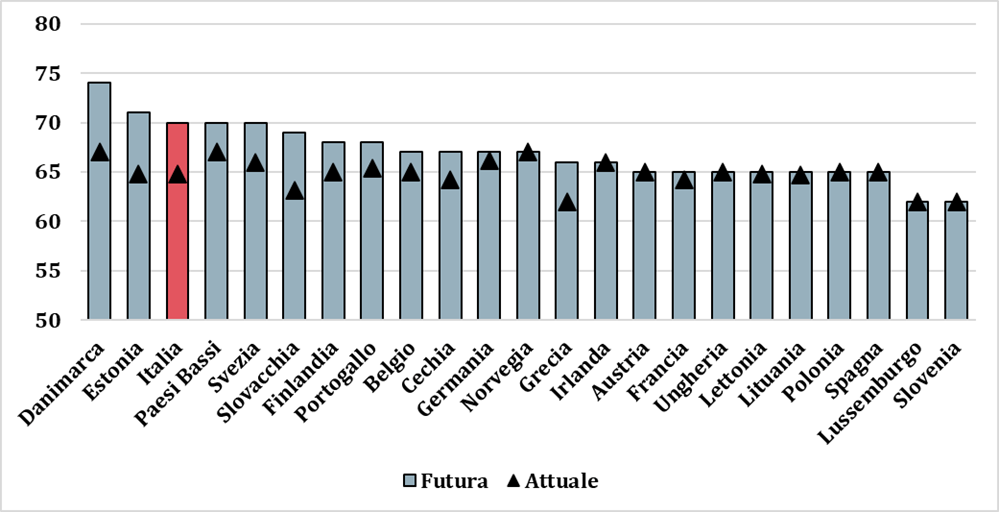 Figura 1. Età pensionabile di uomini che entrano nel mercato del lavoro a 22 anni
